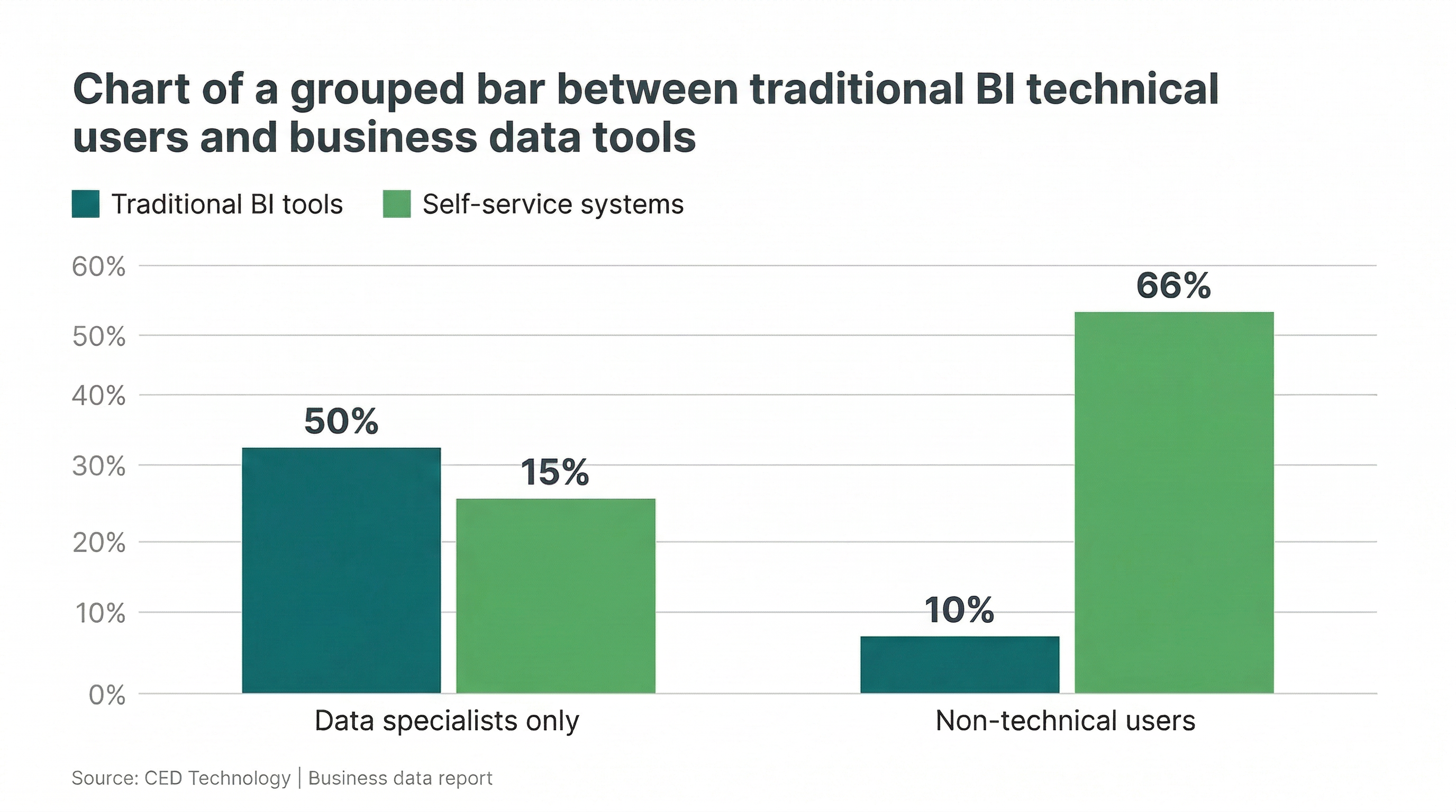 Over 65% of companies are adopting self-service BI platforms to eliminate reliance on IT teams and gain faster access to actionable insights. When data becomes accessible to non-technical users, more people use it. Companies implementing these systems report approximately three times more employees accessing data directly compared to traditional models.